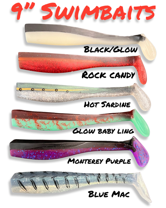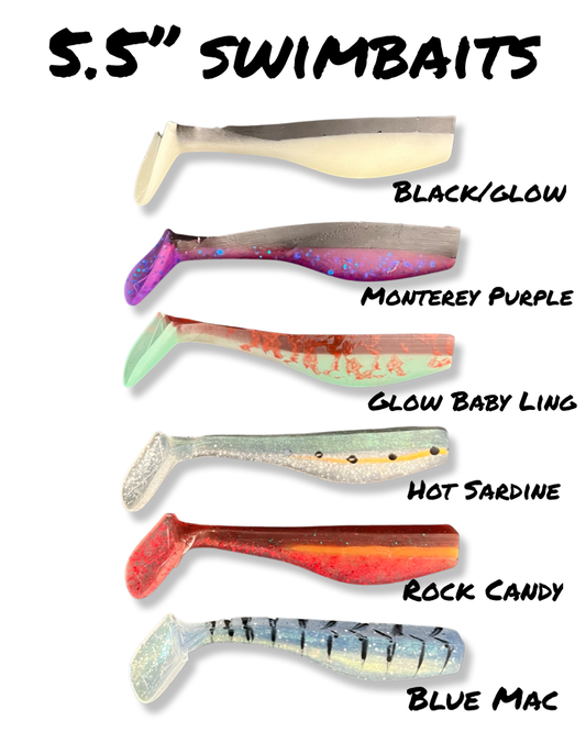 When targeting giant Lingcod, choosing the right swimbaits can make all the difference between a good day and an extraordinary one on the water. The best swimbaits for these formidable predators combine realistic action, durability, and size. Optimal choices often include large, Our lifelike designs that mimic the natural prey of Lingcod, such as smaller fish and squid. These swimbaits are crafted from durable materials to withstand the rugged underwater terrain and the powerful strikes of Lingcod. we recommend Rigging on our jigheads, these baits provoke aggressive reactions from even the most wary of Lingcod. Whether casting from shore or drifting in deeper waters, these swimbaits are essential tools for anglers seeking to hook into that trophy-sized jackpot Lingcod!